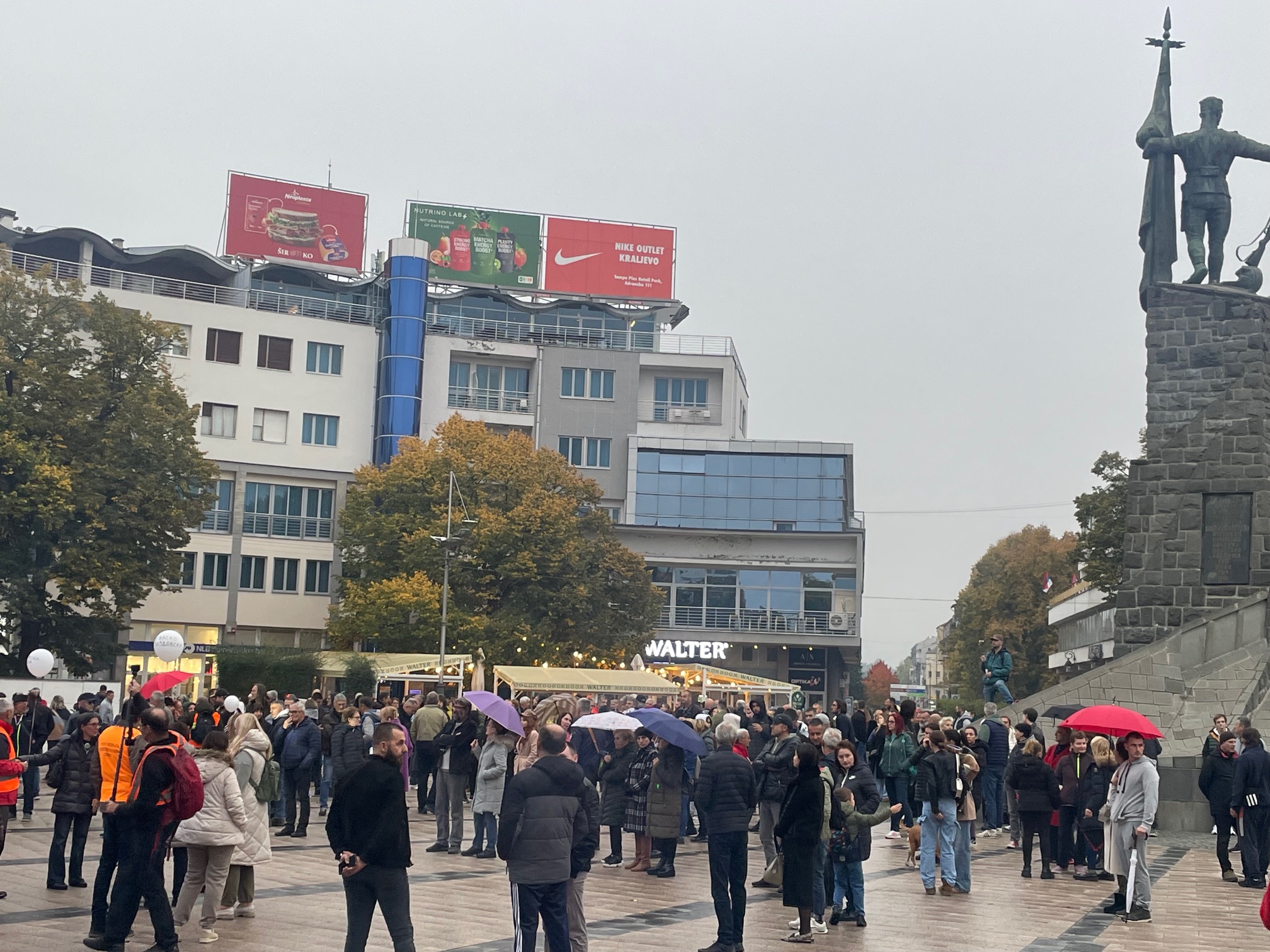 Na Trgu srpskih ratnika večeras je održan protest prosvetnih radnika pod sloganom “Prosveta ne ćuti, znanje se brani”.