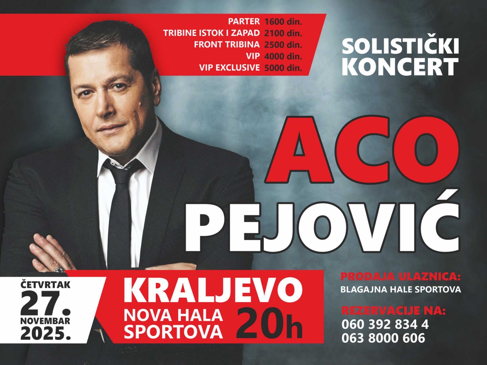 Poznati pevač Aa Pejović, nakon tri godine, održaće solistički koncert u Novoj hali sportova u Kraljevu.